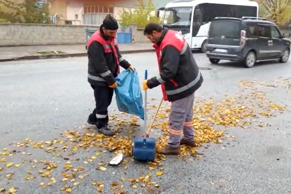 Erzincan’da kışa az bir zaman kala ağaç dallarından sıklıkla dökülen yapraklar belediye ekiplerince temizleniyor.