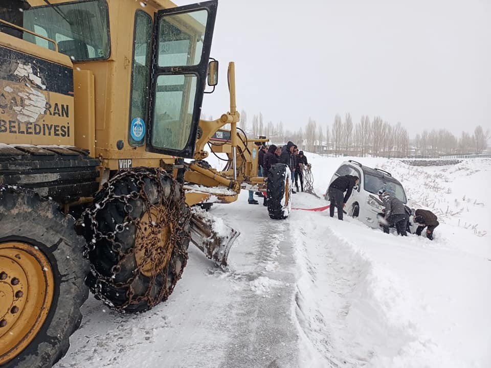 Çaldıran belediyesi karla mücadele ekipleri, Erginler Mahallesi’nden ilçe merkezine gelmekte olan bir araç, yoğun tipiden dolayı kara saplandı. Kendi çabalarıyla aracı saplandığı yerden çıkaramayan araç şoförü ve araçta bulunan iki kişi, belediye karla mücadele ekiplerinden yardım istedi. Kısa sürede olay yerine ulaşan karla mücadele ekipleri, aracı saplanmış olduğu yerden çıkarttılar. Araç şoförü kendilerine yardım eli uzatan karla mücadele ekiplerine teşekkür etti.