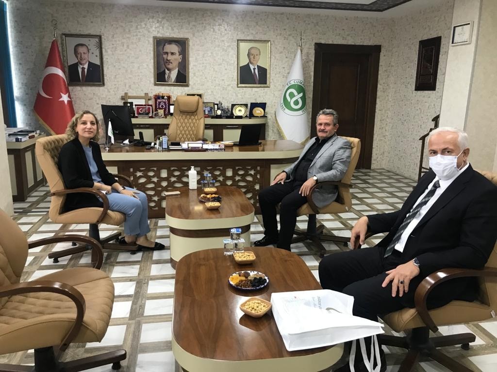DÜZCE ÜNİVERSİTESİ REKTÖRÜ PROF. DR. NİGAR DEMİRCAN ÇAKAR VE DÜZCE ÜNİVERSİTESİ GENEL SEKRETERİ HASAN SADİ ATEŞ, CUMAYERİ BELEDİYE BAŞKANI MUSTAFA KOLOĞLU’NU ZİYARET EDEREK İLÇEDE BULUNAN MESLEK YÜKSEK OKULU İLE İLGİLİ KARŞILIKLI GÖRÜŞ ALIŞVERİŞİNDE BULUNDU.
