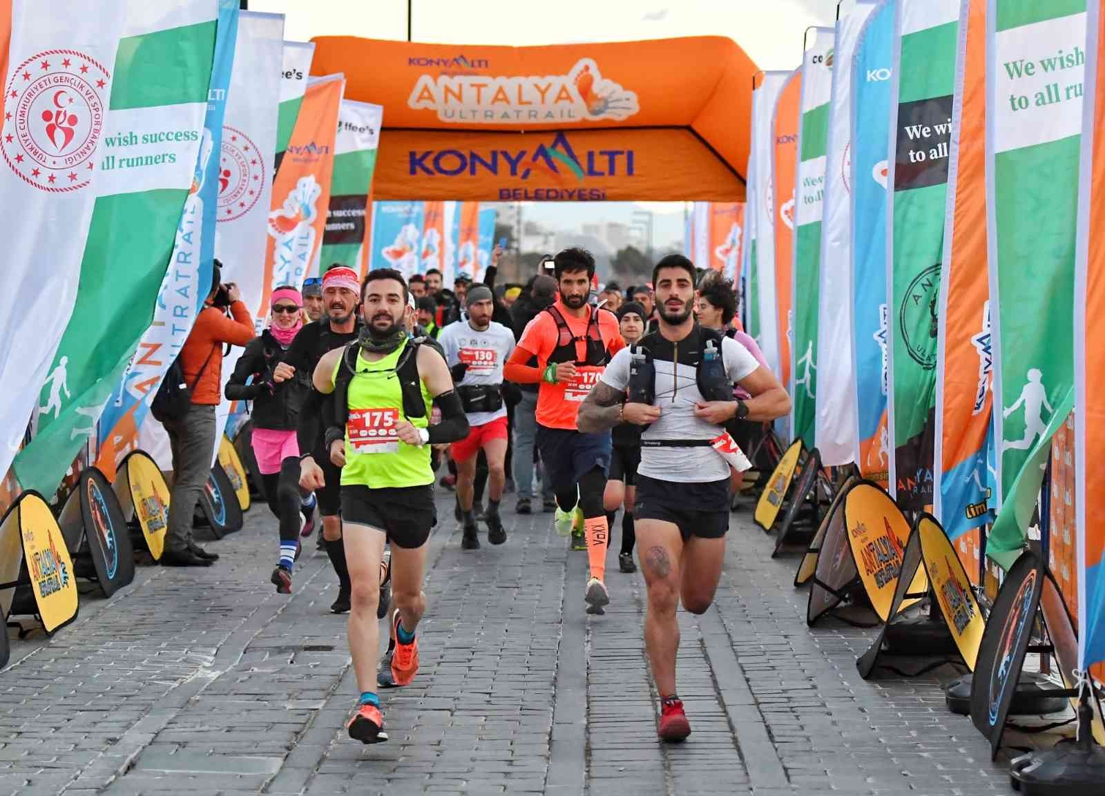 Bu yıl ilk kez düzenlenen Konyaaltı Belediyesi Antalya Ultra Trail Maratonu, Konyaaltı Belediyesi önünde başladı. Sabah saat 05.30’da belediye önünde buluşan sporcular, 06.00’da başlayan koşu öncesi ısınma hareketleri yaptı. 54 kilometrelik parkur için saat 06.00’da başlangıç çizgisine geçen sporcular, Konyaaltı Belediye Başkan Semih Esen’in startıyla koşuya başladı. Bu parkurdaki 54 kilometrelik koşu, Antalya’nın kayak merkezi Saklıkent’te tamamlanacak. Deniz kenarında başlayan koşu yaklaşık 2865 metre yükseklikte tamamlanacak.