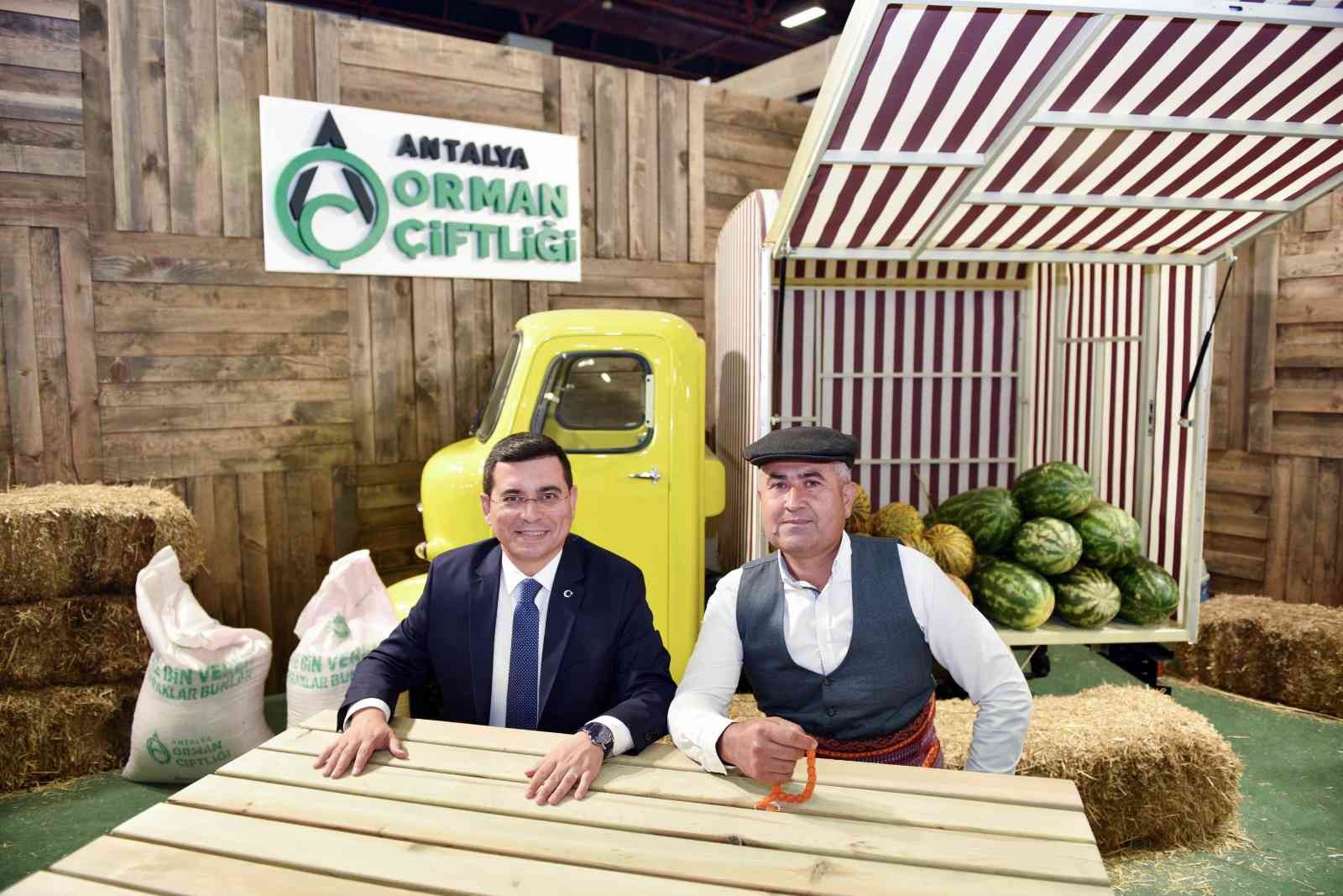 Fuarda kurulan Kepez Belediyesi Standı’nda, tarımsal üretimde farkındalık oluşturmaya yönelik bir proje olan ve bu yıl kavun, karpuz ve buğday üretiminin yapıldığı Antalya Orman Çiftliği’nin tanıtımı yapılıyor. Stantta, çiftlikten hasat edilen buğdayın saman balyaları dekor olarak kullanılırken, çiftlikte üretilen kavun ve karpuzlar da, triportör adlı mini bir arabanın kasasında sergileniyor. Antalya yöresine özgü kıyafetler giyen bir belediye personeli ise standa gelenlere mihmandarlık yapıyor.