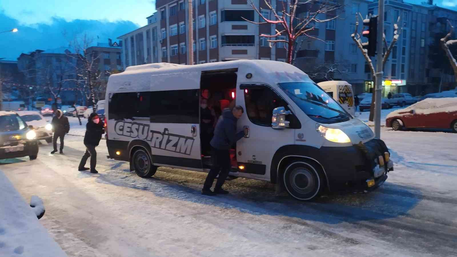İstanbul’da gece boyunca etkili olan kar yağışı ve buzlanma nedeniyle sabah işe gitmeye çalışan vatandaşlar zor anlar yaşadı. Bağcılar’da servis araçları ve otomobiller yolda kaldı. Bazı vatandaşlar ellerine aldıkları tuzu yola dökerek araçların ilerlemesini sağlamaya çalıştı. Yolda kalan bir servis aracını da yine içerisinde bulunan işçiler iterek kurtarmaya çalıştı.