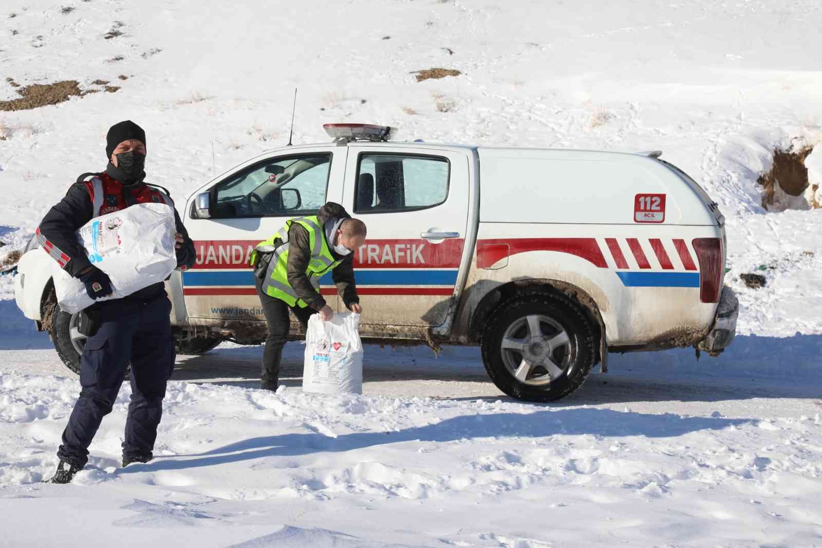 VAN (İHA) – Van’ın Başkale ilçesinde jandarma ve emniyet trafik timleri ile belediye ekipleri, kış mevsiminin getirdiği zor koşullarda sokakta yaşayan hayvanları mama ile besledi.