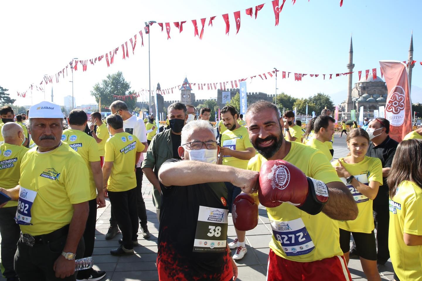 Bir birinden renkli görüntülerin yaşandığı maratonda, Başkan Büyükkılıç, vatandaşlarla bol bol hatıra fotoğrafı çektirmeyi de ihmal etmedi.