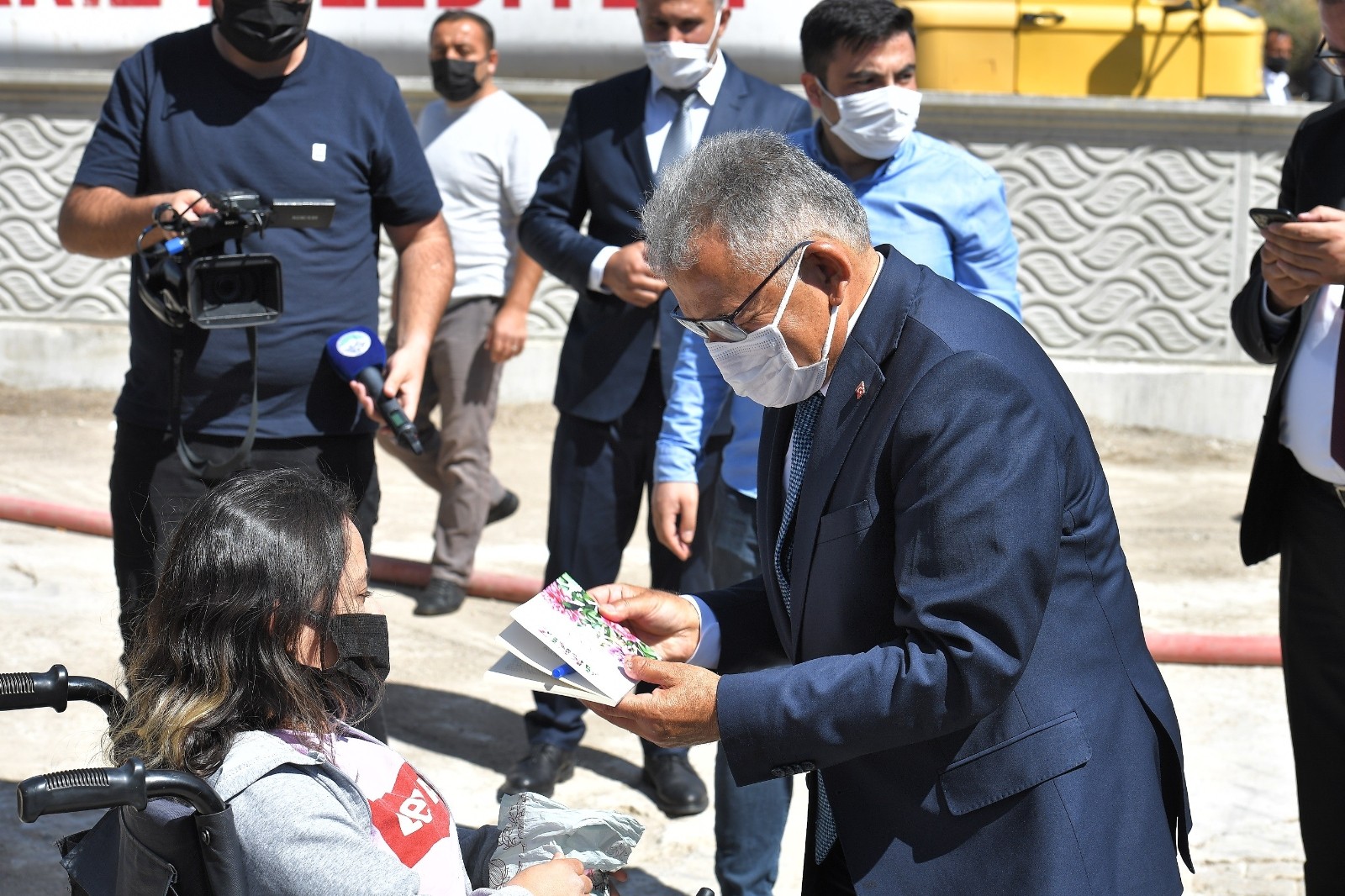 Büyükşehir Belediye Başkanı Büyükkılıç, Sarız’daki hemşehrileri ile buluşurken, Sarız Belediyesi tarafından yapımı tamamlanan Şehit İsmet Bülbül Otogarı açılışına katıldı. Burada şehidin annesi Fadıma Bülbül’e Sarız’ın meşhur el emeği halılarından hediye ederken, bir doktor olarak Sarızlı vatandaşların isteği doğrultusunda, kurulan aşı standında vatandaşlara Covid-19 aşısı da vurdu. Ziyaretinde, Sarız halkının büyük ilgisi ve memnuniyeti ile karşılanan Büyükkılıç, terminal açılışında yaptığı konuşmada da sık sık alkışlandı. Çocuklara Yukatel Kayserispor forması hediye eden ve ilçe temaslarının sonunda turistik ‘Sarız’ yazısı önünde, Türk Bayrağı altında Sarızlılar ile hatıra fotoğrafı çekinen Başkan Büyükkılıç, ilçeden memnuniyetle uğurlandı.