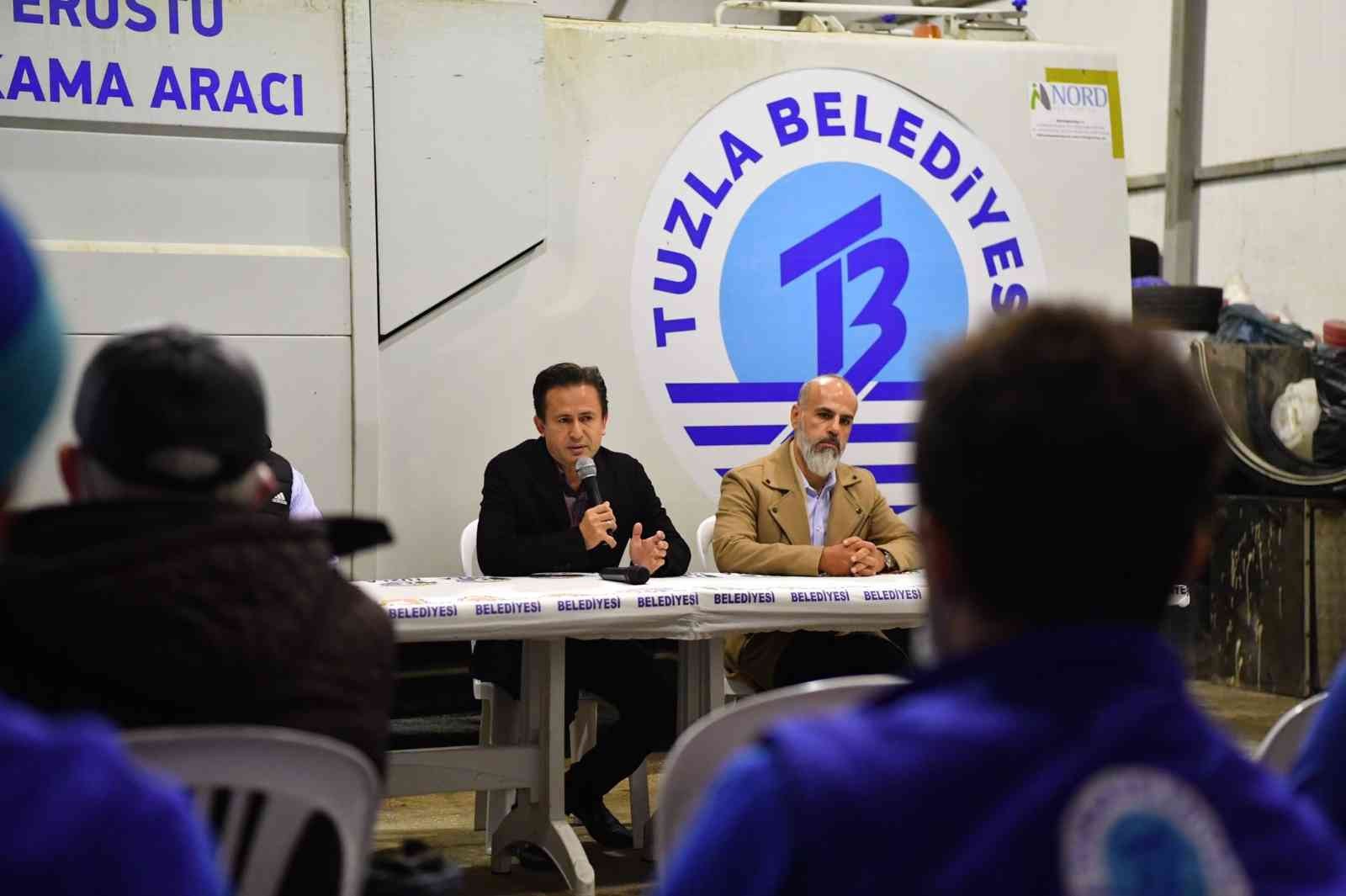 Tuzla Belediye Başkanı Dr. Şadi Yazıcı, “Ben öncelikle hepinize teşekkür ediyorum. Bir pandemi dönemini yaşadık. Belediye Başkanlığı dönemimde hep temizlik işleri, kamuoyu yoklamalarında en iyi sonuç aldığımız birimimiz oldu. Dolayısıyla ben sizin şahsınız da tüm temizlik personellerimize, en uç noktada sokaklarımızı süpüren tüm kardeşlerime teşekkür ediyorum. Bu pandemi döneminde de güzel sonuçlar aldık, temizlik hizmetinin nasıl yapılacağını herkese gösterdik. Geniş coğrafyada, uzun sokakları, caddeleri olan, bazı ilçelere göre 3-5 kat daha büyük bir yeri temizliyorsunuz. Pandemi döneminde de bizim yüzümüzü yere düşürmediniz. Sadece bununla kalmadınız, yeri geldi bir sokak köpeğini temizleyerek gündem oldunuz. Yeri geldi bir sokak hayvanına yardımcı oldunuz. Sabah erkenden yola çıkan kadın vatandaşlarımız bana mesaj atıyorlar. ‘Sizin temizlik personelleriniz sokakları temizlemeye başlaması ile birlikte biz kendimizi daha güvenli hissediyoruz” diyorlar. Yeri geldi Formula-1’de aracımız ile dünya gündemine oturduk” dedi.