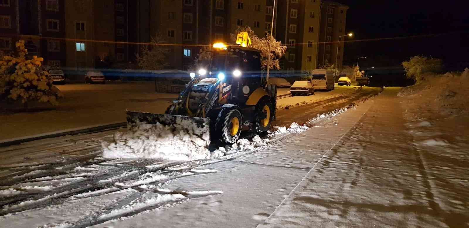 Nevşehir Belediyesi karla mücadele ekipleri kar yağışı ve buzlanma nedeniyle vatandaşların günlük yaşamının olumsuz etkilenmemesi için gece boyunca kar temizleme ve tuzlama çalışması yaptı.