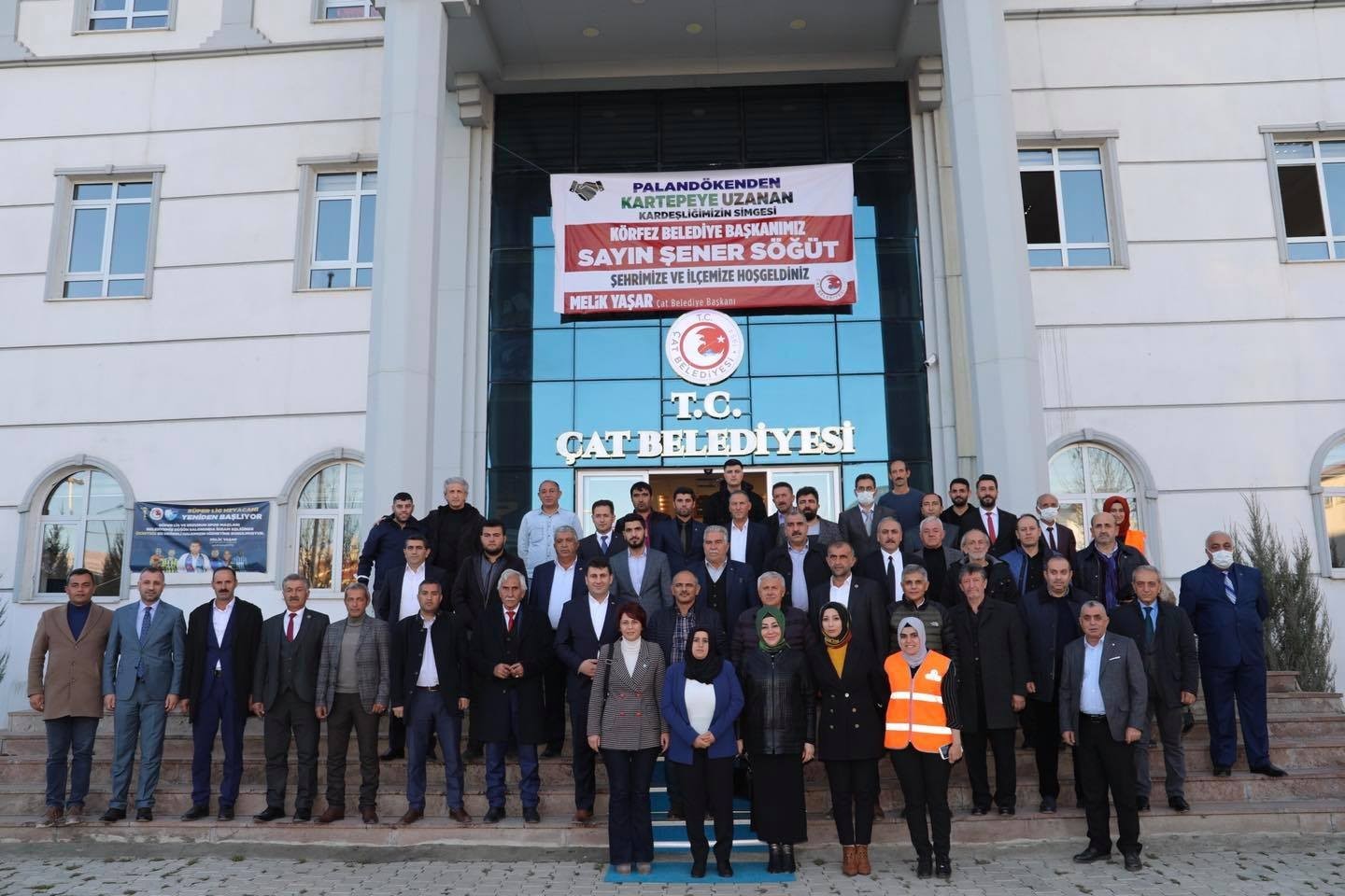 KÖRFEZ BELEDİYE BAŞKANI ŞENER SÖĞÜT, BERABERİNDEKİ HEYETLE BİRLİKTE KARDEŞ BELEDİYE OLAN ÇAT’A ZİYARETTE BULUNDU.