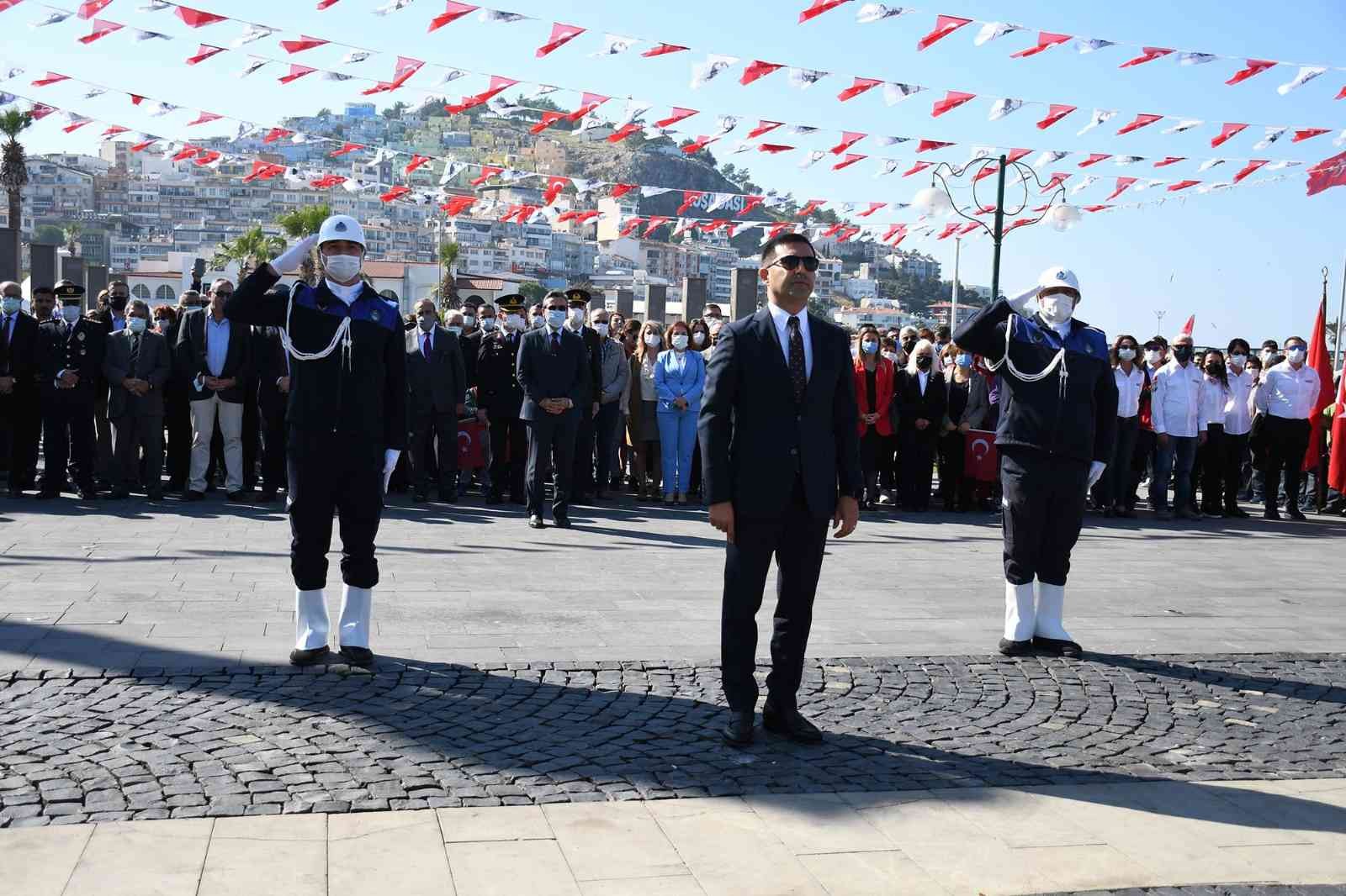 KUŞADASI’NDA CUMHURİYET’İN İLANININ 98’İNCİ YIL DÖNÜMÜ KUTLAMALARI ATATÜRK MEYDANI’NDA DÜZENLENEN RESMİ ÇELENK SUNMA TÖRENİ İLE BAŞLADI.