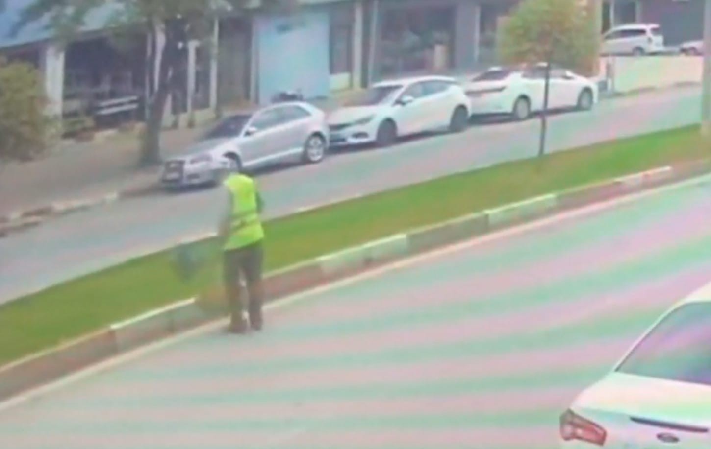 BURSA’NIN İNEGÖL İLÇESİNDE MEYDANA GELEN KAZADA OTOMOBİLİN ÇARPTIĞI BELEDİYE TEMİZLİK İŞÇİSİ YARALANDI. KAZA ANI BİR İŞYERİ GÜVENLİK KAMERALARINA SANİYE SANİYE YANSIDI.