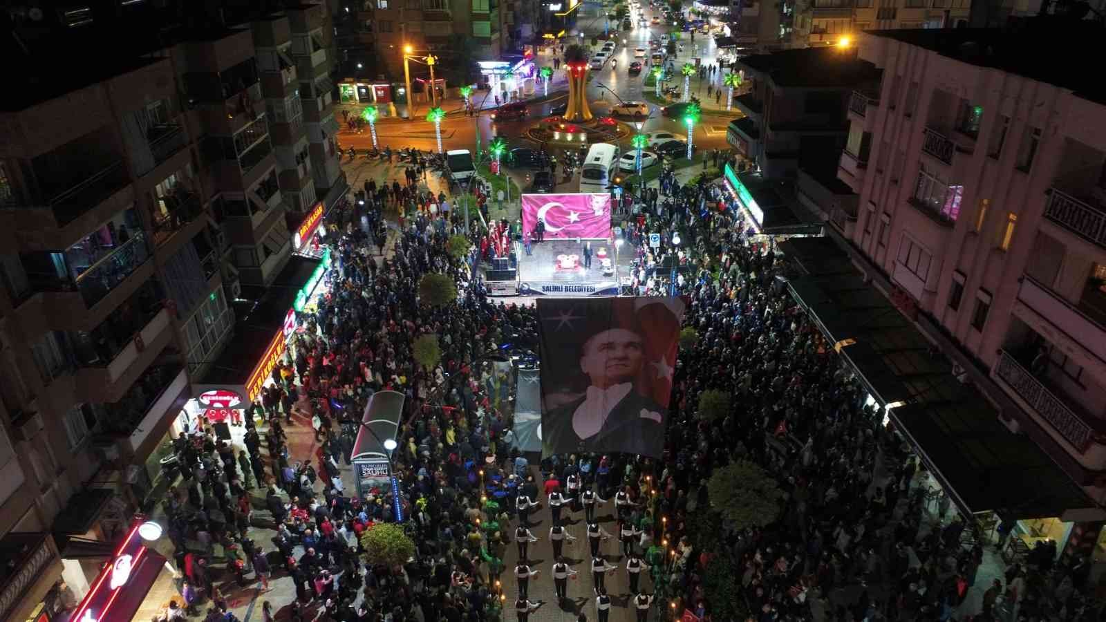 CUMHURİYET’İN KURULUŞUNUN 98. YILDÖNÜMÜ ETKİNLİKLERİ KAPSAMINDA MANİSA’NIN SALİHLİ İLÇESİNDE BELEDİYE ÖNCÜLÜĞÜNDE FENER ALAYI DÜZENLENDİ. SAAT 19.23’TE BAŞLAYAN FENER ALAYINDA GECEYİ GENÇLERİN ELLERİNDE TAŞIDIKLARI MEŞALELER AYDINLATTI.