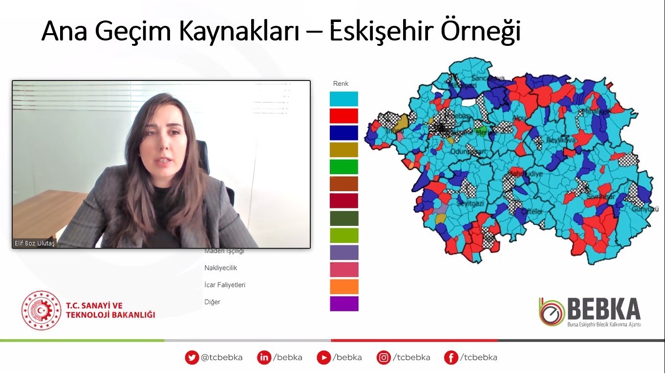 Sanayi ve Teknoloji Bakanlığı Kalkınma Ajansları Genel Müdürlüğü’nün bugüne kadar yürüttüğü en değerli çalışmaların başında yer alan YER-SİS projesine ilişkin elde edilen verileri Bursa Eskişehir Bilecik Kalkınma Ajansı (BEBKA) Planlama Programlama ve Koordinasyon Birimi Başkanı Elif Boz Ulutaş ile Kalkınma Ajansları Genel Müdürlüğü İzleme, Değerlendirme ve Analiz Dairesi Uzmanı Zeyneb Ersayın paylaştı. Çevrimiçi gerçekleşen ve oldukça geniş katılım sağlanan toplantının başında hayata geçirilen çalışmaya ilişkin hazırlanan tanıtım videosu yayımlandı. Elif Boz Ulutaş, Kalkınma Ajanslarının yenilikçi bir kurum olarak tasarlandığını belirterek, “Kalkınma Ajansları projelere destek vermekle kalmıyor, ’proje ve bilgi üretim merkezi’ olma yolunda konumlanıyor. Bu çerçevede hem kamu hem özel sektör hem de üniversiteler ve STK’ların kaynaklarını verimli kullanması adına bilgi temelli topluma katkı sağlamamız bizim için çok önemli” dedi.
