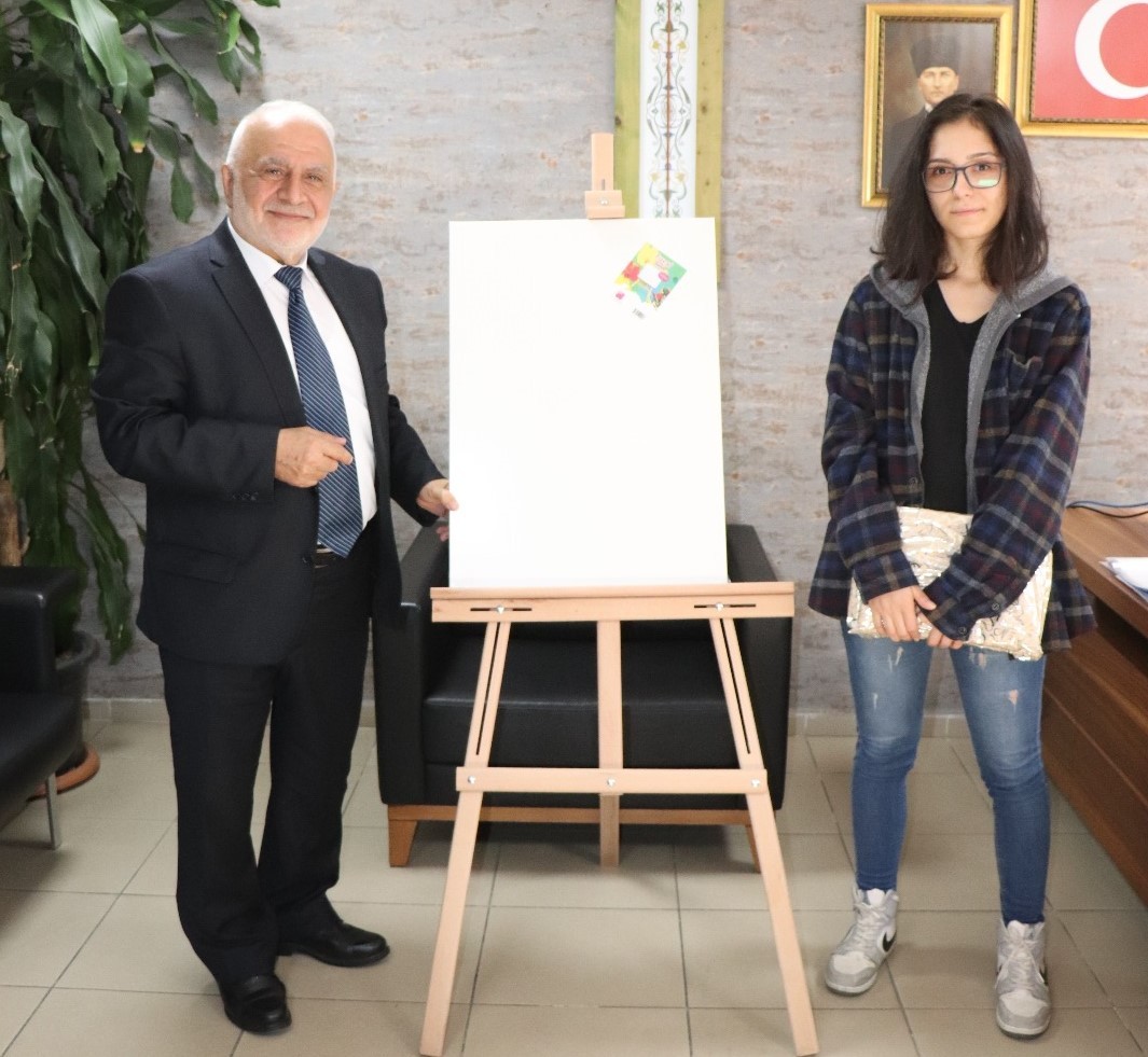 Hediyelerini alan İrem Çetintaş ise Başkan Yardımcısı Hüdaver Gösterişli ve Belediye Basın Yayın ve Halkla İlişkiler Müdürlüğü’ne gösterdikleri ilgi için teşekkür etti.