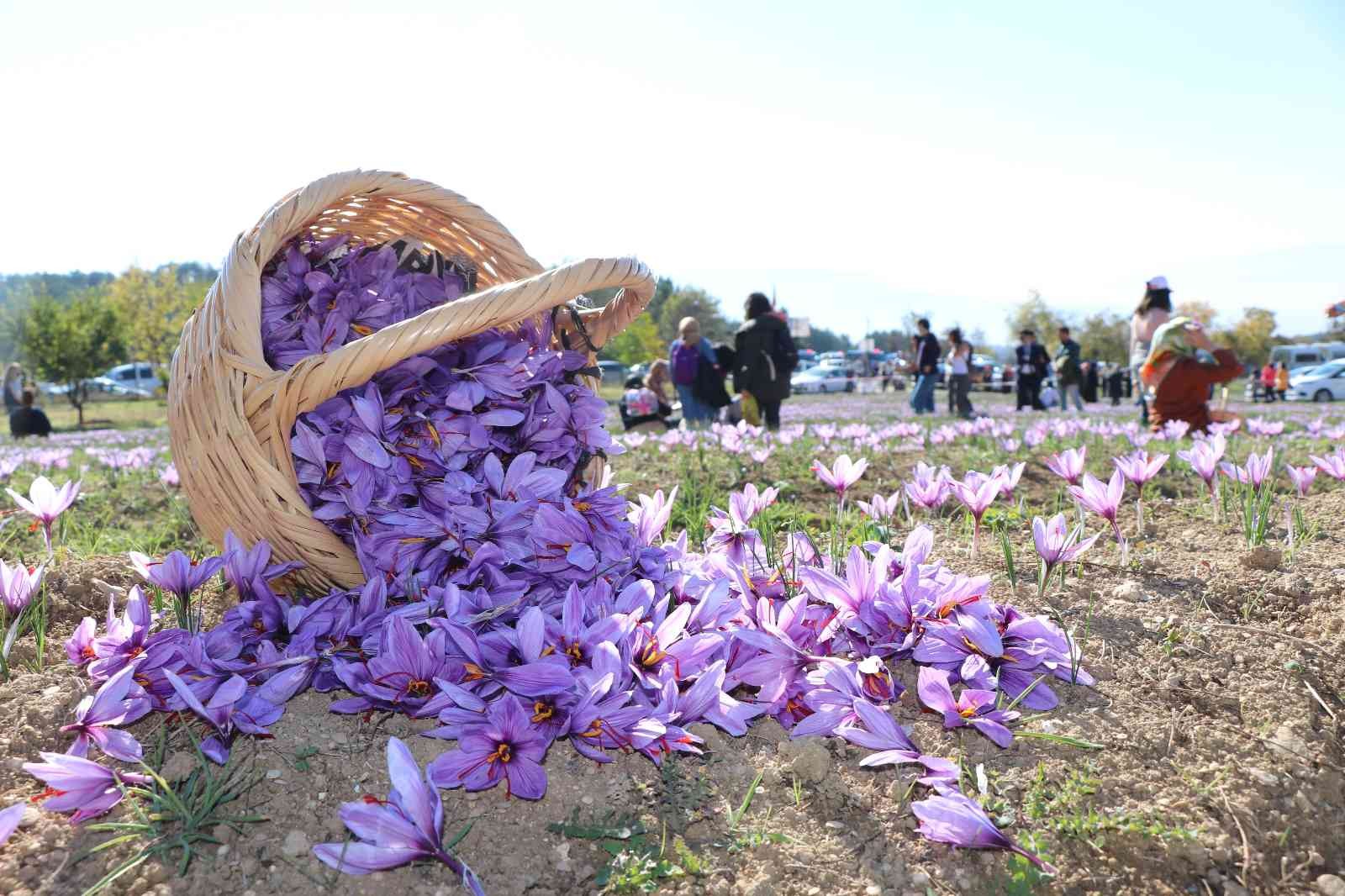 Karabük’ün Safranbolu ilçesinde bu yıl 5’incisi düzenlenen Safran Festivali çeşitli etkinliklerle devam ediyor. Dün kortej ile başlayan festivalin ikinci gününde Yukarıçiftlik köyü Keten Mahallesi’nde İsmail Yılmaz’a ait 27 dönümlük safran üretim çiftliğinde safran hasadı yapıldı. Safran tarlasına giren vatandaşlar, ellerine sepetleri alarak hasat yapıp, bol bol fotoğraf çektirdi. Son yıllarda yeni akım haline gelen safran tarlaları yerli ve yabancı binlerce kişiyi çekerken, ilçenin turizmine de önemli katkı sunmaya başladı.