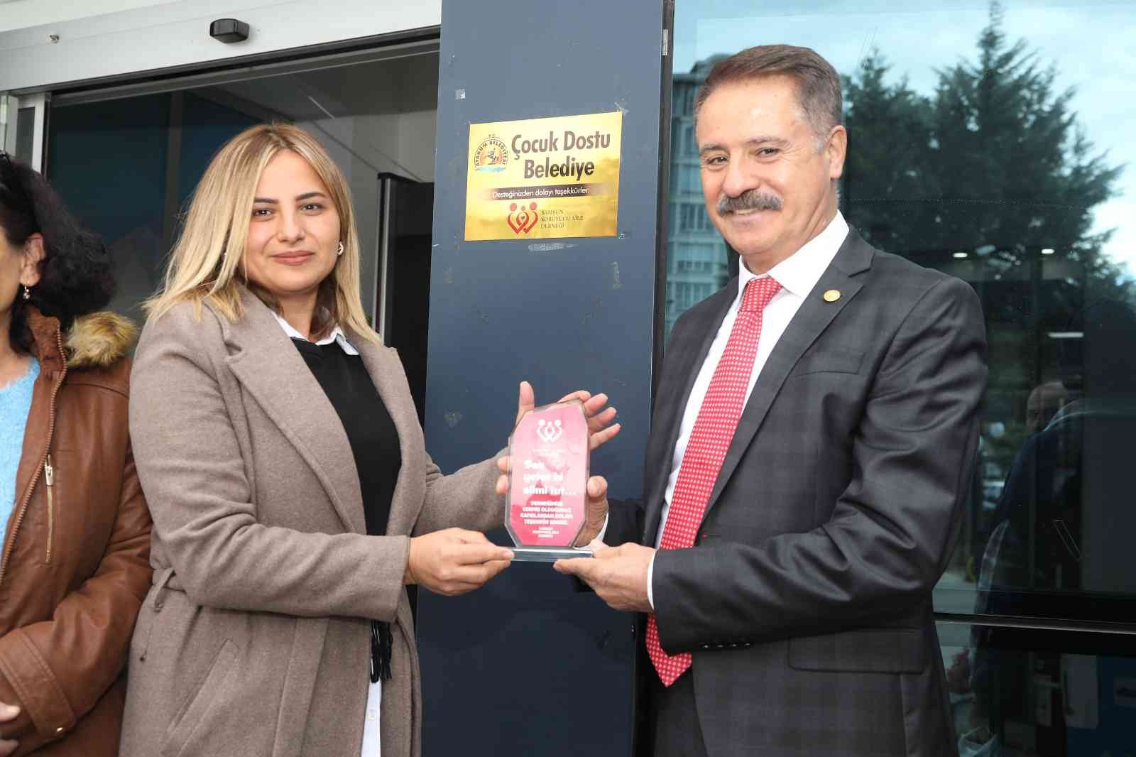 Samsun Koruyucu Aile Derneği, hayata geçirdiği çalışmalarla çocuk haklarını gözeten ve çocuk odaklı projelere destek veren Atakum Belediyesi’ni “Çocuk Dostu Belediye” ilan etti. Samsun Koruyucu Aile Derneği Başkanı Zeynep Çalış ve dernek üyeleri Atakum Belediye Başkanı Av. Cemil Deveci’yi makamında ziyaret etti. Ziyaret sonrasında Başkan Deveci ile Başkan Çalış birlikte belediye hizmet binasının girişine “Çocuk Dostu Belediye” levhası astı.