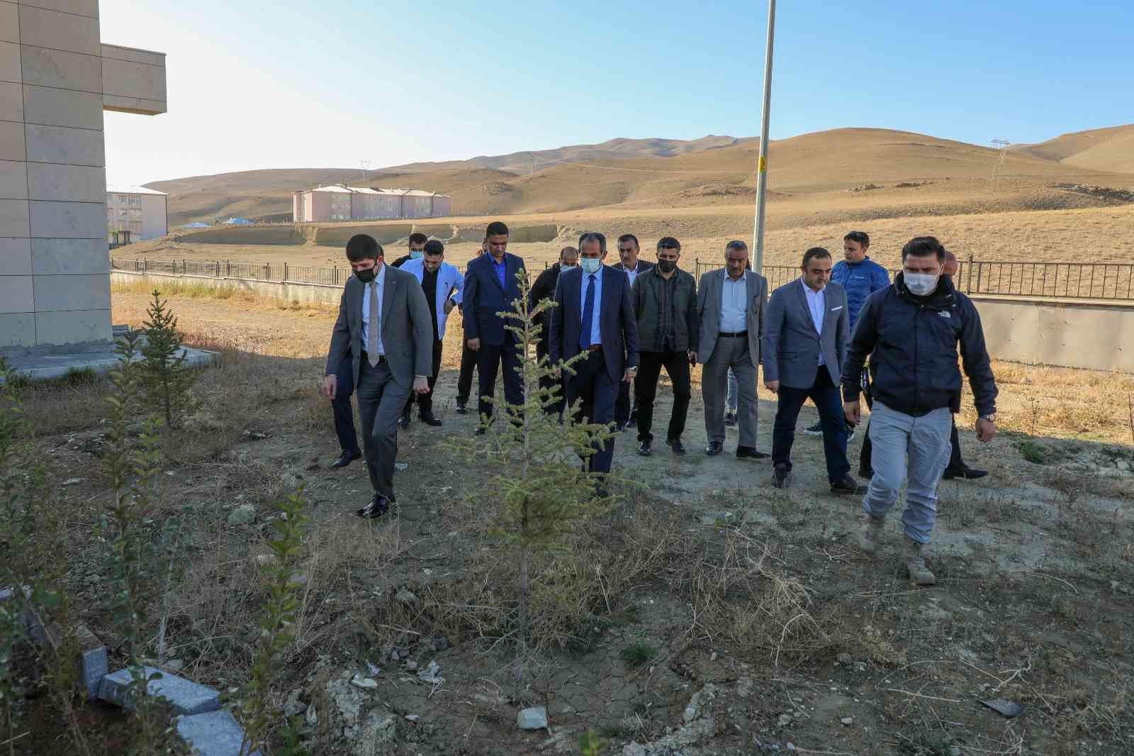 Gürpınar Kaymakamı Fatih Kayabaşı, Gürpınar Belediye Başkanı Hayrullah Tanış, İl Sağlık Müdürü Prof. Dr. Mahmut Sünnetçioğlu ve beraberindekiler, diyaliz merkezinin yapılacağı alanda incelemelerde bulundu.